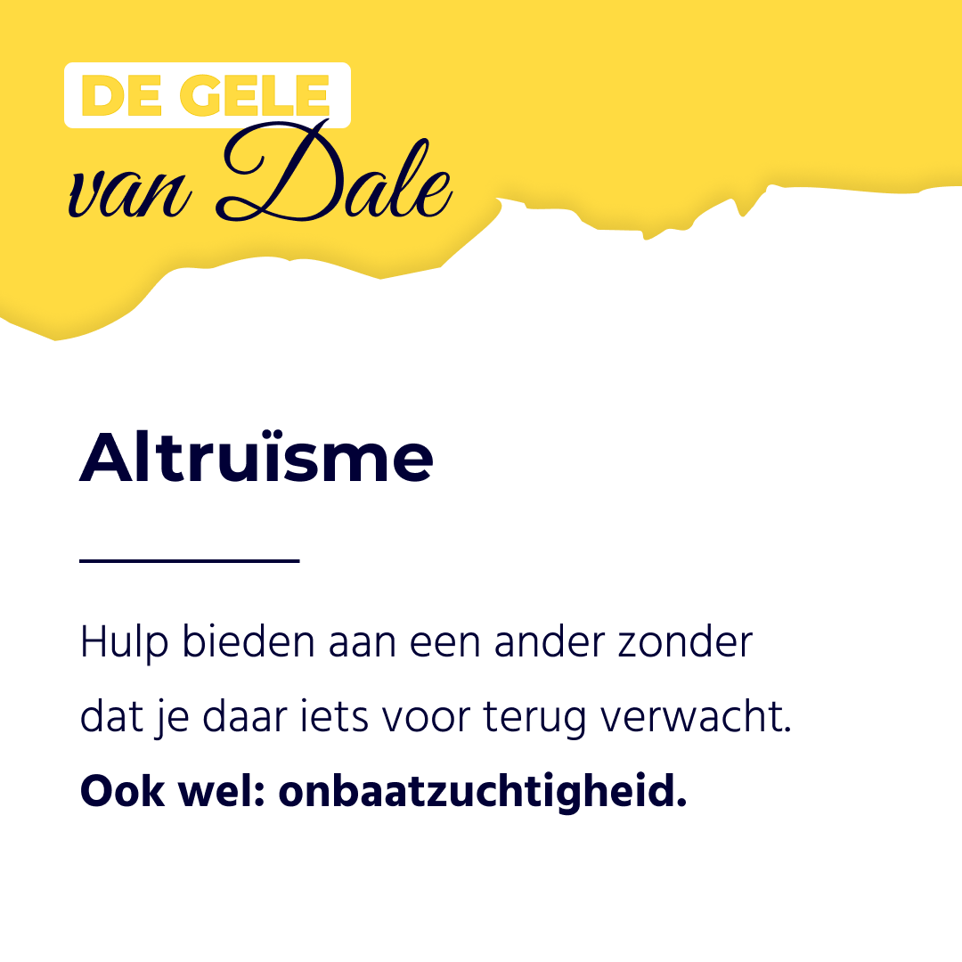 - Verminder stress: Altruïstisch gedrag activeert het gebied in onze hersenen dat verantwoordelijk is voor positieve gevoelens. Dit werkt stressverlagend. Het besef dat je iets goeds doet voor anderen kan dus bijdragen aan een verminderde stressreactie in je lichaam. Dat komt goed uit in een periode waarin burnouts de boventoon voeren.