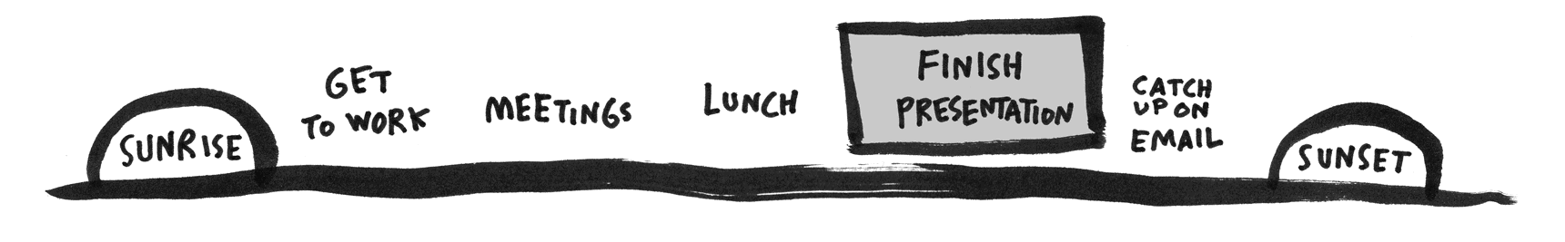 Heb je nu al een flinke lijst waar je het een beetje benauwd van krijgt? Volgens Jake Knapp en John Zeratsky, ex Google werknemers en productiviteitsexperts, is het belangrijk om te focussen op taken die tussen korte en lange termijn goals vallen. Hierdoor zal je rust ervaren en het zal je helpen tijd vrij te maken. Deze tussentaken noemen Knapp & Zeratsky 'a highlight'. Begin de dag met bedenken welke taak jouw hoogtepunt van de dag wordt. Als je aan het einde van de dag terug denkt aan alles wat je hebt gedaan, op welke activiteit of welk doel wil je dan trots zijn? Dat is jouw highlight. Dit geeft elke dag een centraal punt waar je naartoe werkt.